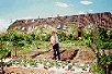 Helle og vores nu afdøde hund, Donny, i Helles nygravede køkkenhave med højbede i Stavnsbåndet maj 1991